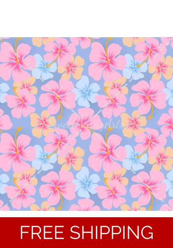 Hibiscus, dreamy, pastel, summer, spring, blue, pink, peach, swimwear, bikini.